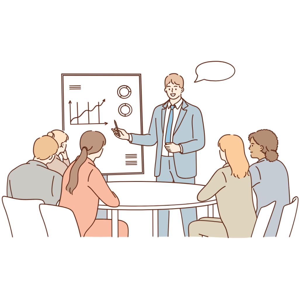 | 4. プレゼン& Zoom練習 | 実際のビジネス場面を想定した内容で練習。成長を実感し、自信を持って次のステップへ進めます。 |