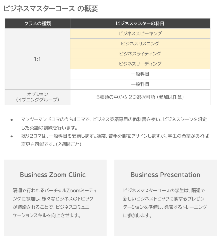 ※英語コーチングとビジネス英語プログラムは3ヶ月間の料金(月8回レッスンの場合)を想定