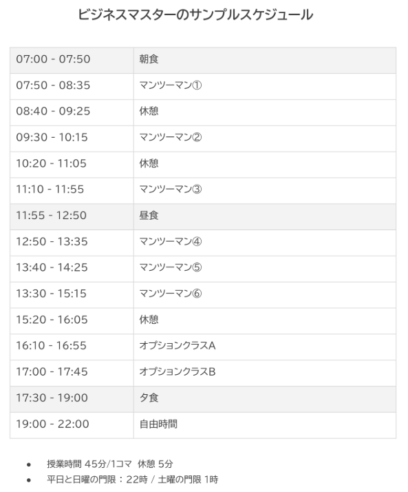 マンツーマンクラスが1日6コマあり、